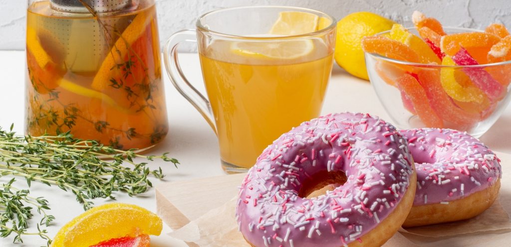 - الأطعمة الغنيّة بالسكريّات: كالحلويات مثلًا، لأنّها قد تؤدّي إلى ارتفاع سريع في مستوى السكّر في الدمّ، ما يعطي شعورًا بالنشاط، ومن ثمّ يليه انخفاض حاد، ما يؤثّر على الطاقة.