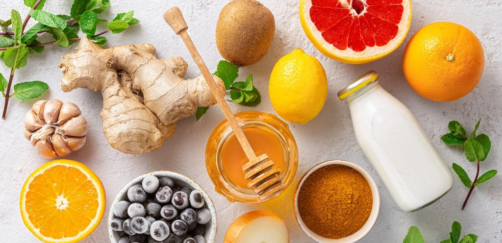 - الزنجبيل: جذر متعدد الاستخدامات له خصائص مضادة للالتهابات ومضادة للميكروبات، الزنجبيل ممتاز لمكافحة مشاكل الجهاز الهضمي والغثيان وحتى التهابات الجهاز التنفسي عند الأطفال. يمكن أن يوفر شاي الزنجبيل أو الأطعمة المملوءة بالزنجبيل راحة لطيفة لمختلف الأمراض.