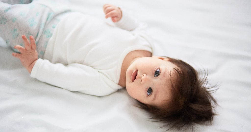 - أربعة أشهر: يبدأ الطفل بالهذيان وخروج أصوات ومقاطع ساكنة.