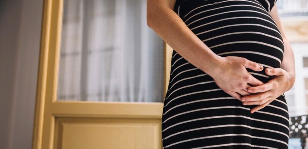 امرأة حامل تضع يدها على بطنها