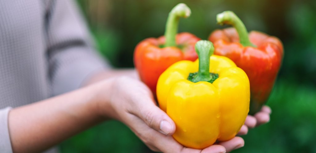 امرأة تحمل بيدها فلفل حلو