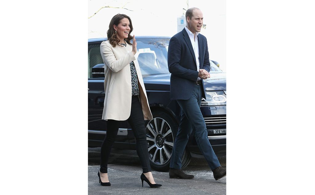 في 22 مارس 2018، زارت كيت ميدلتون أكاديمية تشوبهام في لندن مرتدية معطف Redgrave من Goat، وبلوزة Hobbs، وبنطلون جينز أسود ضيق قبل الإقلاع في إجازة أمومة.