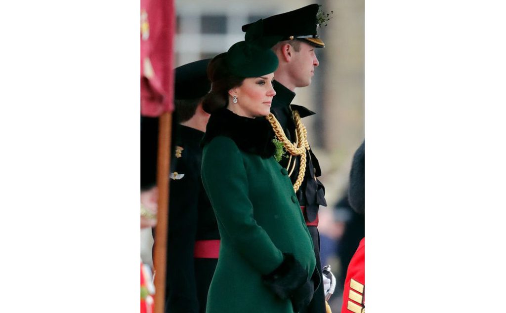 في 17 مارس 2018، ارتدت كيت معطفًا زمرديّ اللون من كاثرين ووكر مع قبعة متطابقة في يوم القديس باتريك لتكريم الحرس الأيرلندي جنبًا إلى جنب مع الأمير ويليام.