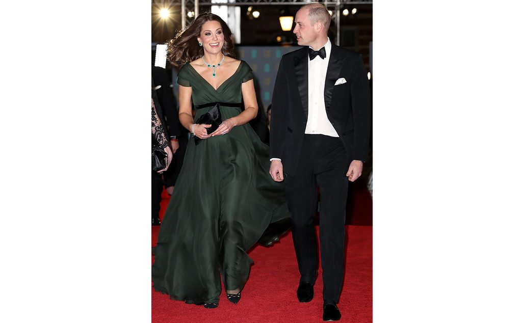 في 18 فبراير 2018، ارتدت دوقة كامبريدج فستانًا أخضر فخم من Jenny Packham إلى BAFTAs. إن اختيارها للون الداكن والشريط الأسود كحزام كان التزامًأ بقواعد اللباس الأسود بالكامل لحركة Time’s Up.