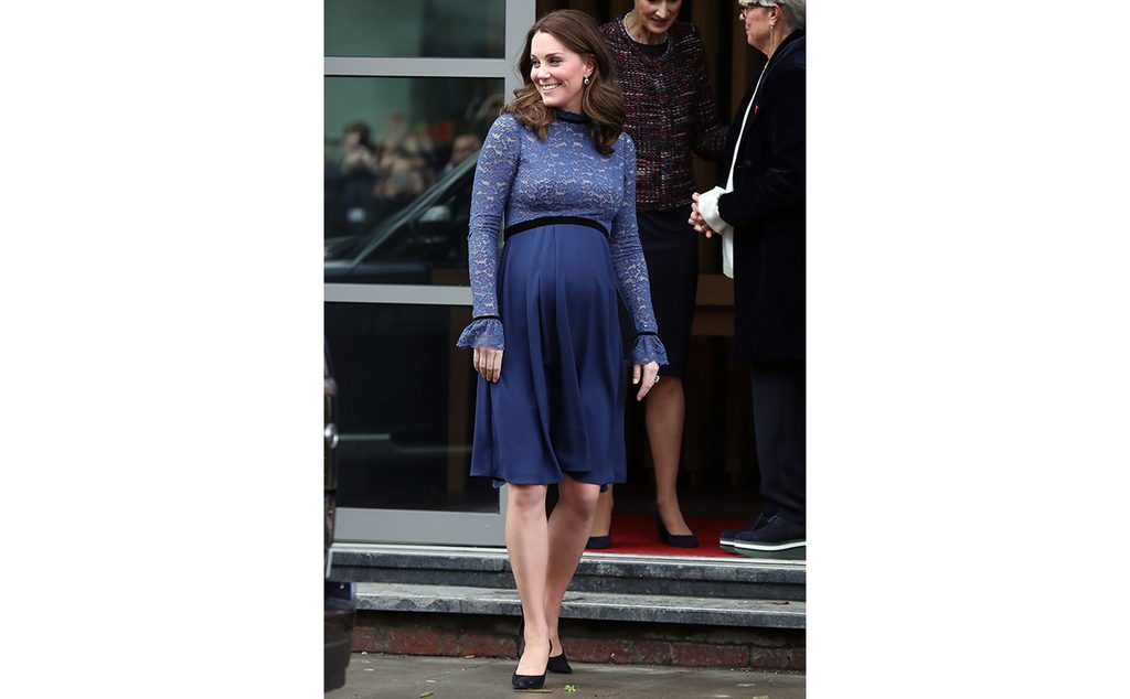 بالرغم من الحمل وحجم البطن الذي يكبر في هذه الفترة، ظلّت دوقة كمبريدج كيت ميدلتون محافظة على أناقتها المعهودة من خلال اختيار ملابس الحمل الجذابة مثل الفساتين الكلاسيكية والمعاطف بالأحزمة.