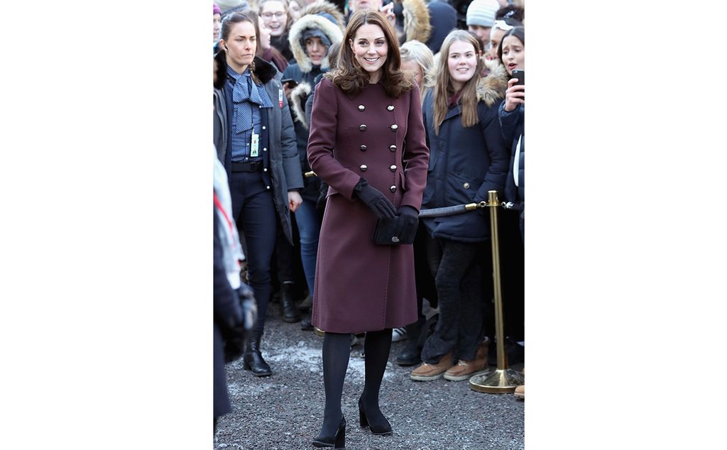 في 2 فبراير 2018، اختارت كاثرين معطف Dolce & Gabbana الأنيق أثناء زيارتها لمدرسة Hartvig Nissen في أوسلو، النرويج. قفازات سوداء وجوارب طويلة تحمي من درجات الحرارة المتجمدة.