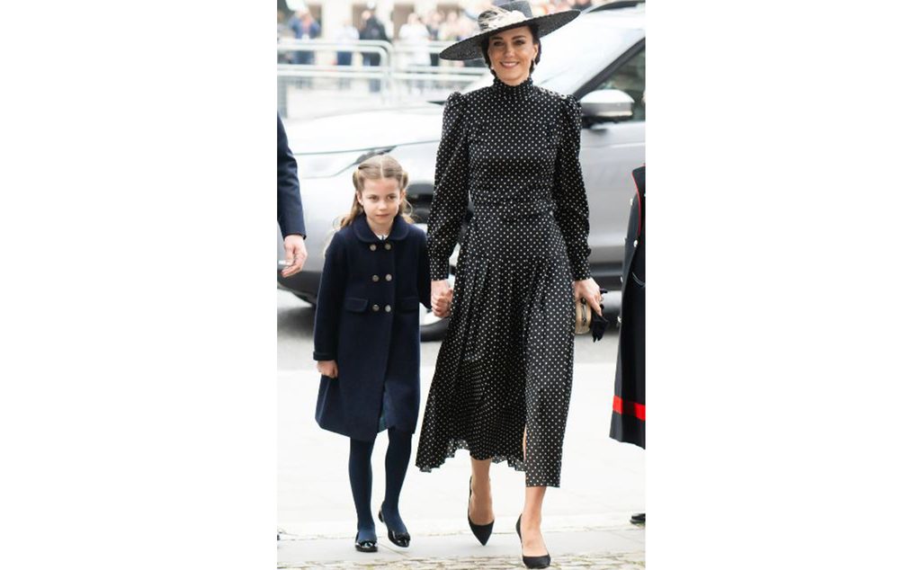 في 29 مارس 2022، حضرت كيت والأميرة شارلوت الإحتفال التذكاري لدوق إدنبرة وكان الأسود سيّد الموقف، مع احترام أسس اعتماد اللون الأسود بحسب عمر كل واحدة منهما. فالدوقة اختارت الفيتان بنقشة Polka Dot أمّأ الأميرة الصغيرة فقد أطلت بالمعطف والجوارب الصوفية والباليرينا باللون الأسود.