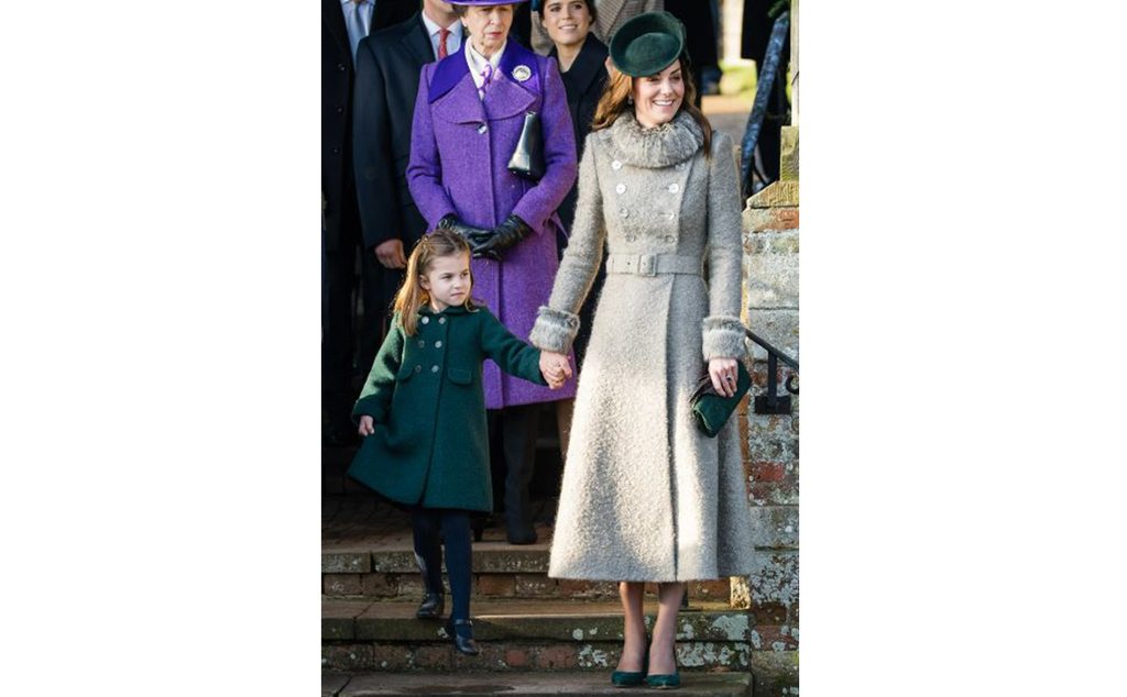 في 25 ديسمبر 2022 حضرت كيت ميدلتون والأميرة شارلوت احتفال يوم عيد الميلاد وقد نسّقتا لهذه الإطلالة المعاطف الصوفية بالأسلوب الرسمي مع تنسيق اللون الزيتي أيضًا بين قبعة وحقيبة يد كيت ولون معطف شارلوت.