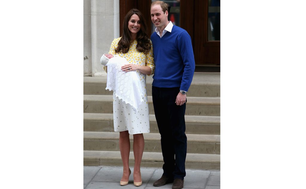 بعد ولادة الأميرة شارلوت في 2 مايو 2015، وكما اعتدنا عليها تغادر كيت ميدلتون المستشفى بكامل أناقتها مرتدية فستان أصفر وأبيض يصل بطوله الى ركبتيها. بتصميمه هذا يبدو الفستان مريحًا لكل أمّ وضعت طفلها للتو. اختارت كالعادة الحذاء بالكعب العالي، وهذا ما لن نستطيع فهمه، فالتنسيق بين الفساتين المريحة والأناقة أمر من اختصاص الأميرات.