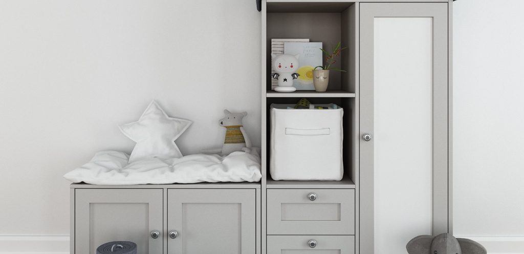 - اعتمدي دولاب بتصميم يتناسب مع حجم الغرفة: ويوفر مساحة تخزين كافية لملابس أطفالك وأغراضهم. وفي هذا السياق، تعتبر الدواليب ذات الأبواب المنزلقة من الخيارات الجيدة لتوفير المساحة. أما بالنسبة للتسريحة، اختاري تصميمًا بسيطًا يحتوي على أدراج لتخزين ألعاب الأطفال الصغيرة وأغراضهم الشخصية.