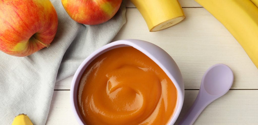 كل ما عليك فعله هو أخذ موزة ناضجة، وتقشيرها، وتقطيعها إلى قطع صغيرة. وبمجرد الانتهاء من ذلك، قومي بهرس الموز تمامًا مثل التفاح، يمكنك اختيار إضافة القليل من حليب الثدي أو الماء لجعل القوام الصلب سائلًا ولزجًا.